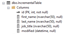 You can specify the check column inside of the task by editing the Source Information for the task. For this entry, we use the a SQL Server table with the following definition as an example: