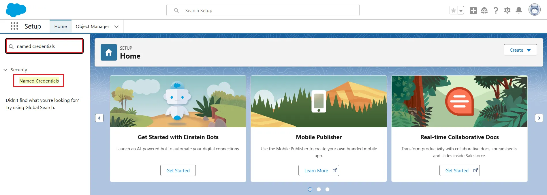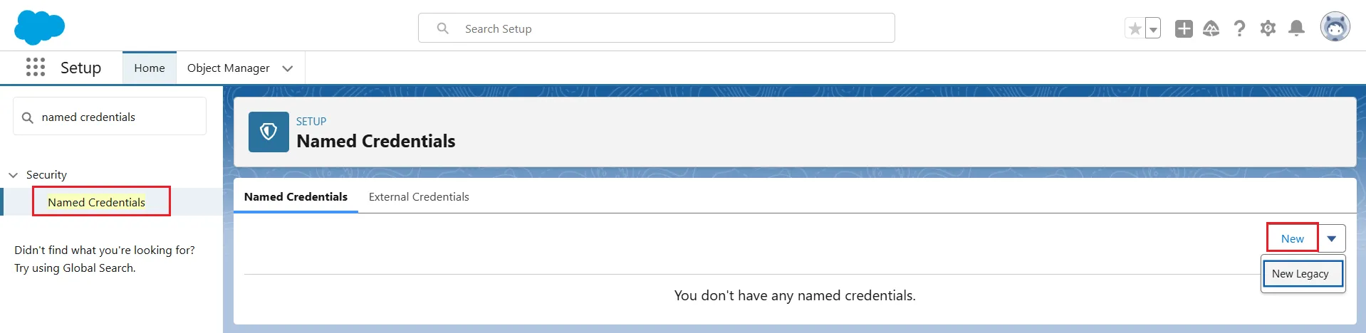 - Search for Named Credentials in the search bar and click on it.