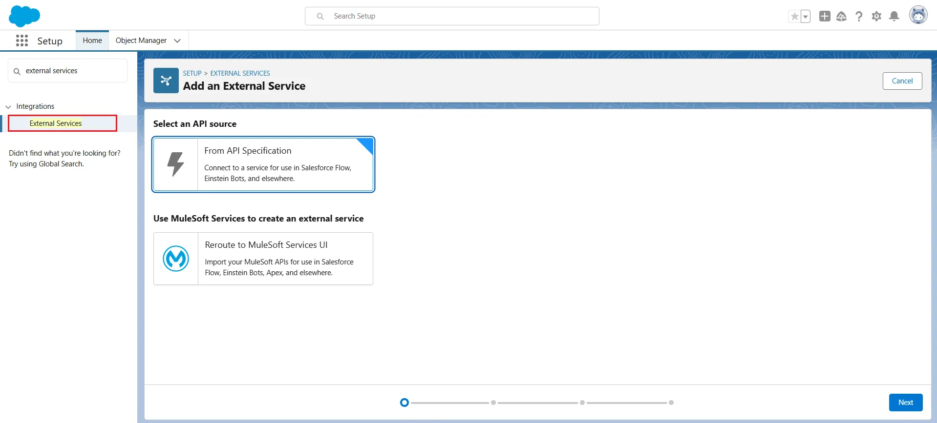 - In the Add an External Service page, click From API Specification under Select an API Source.