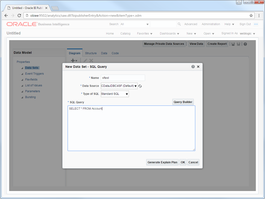 After deploying the JDBC driver, you can create a JDBC data source from BI Publisher.