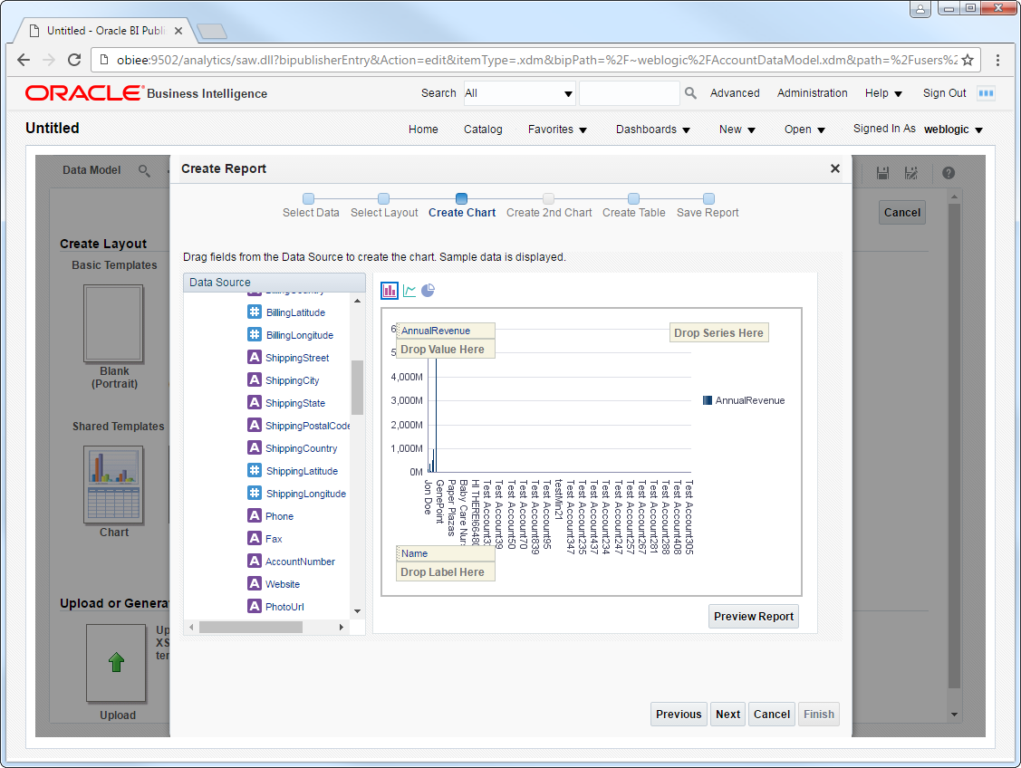 - Click Create Report -> Use Data Model.