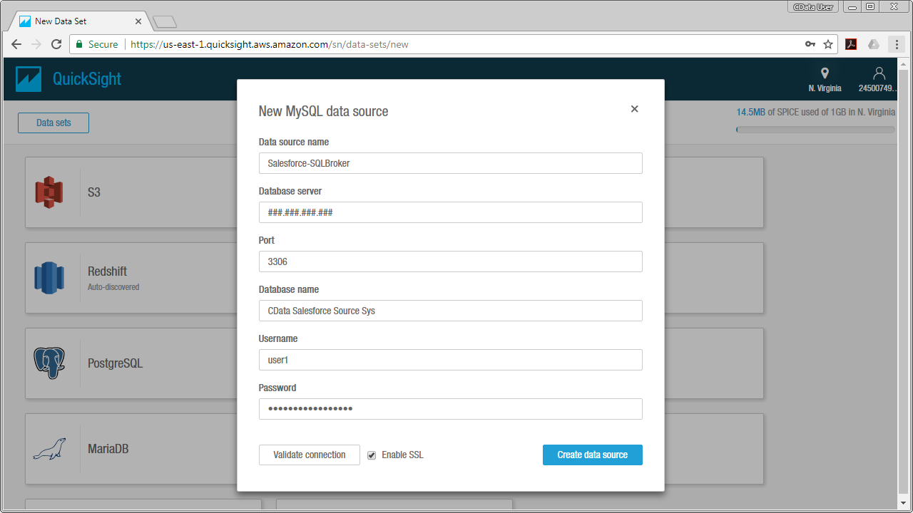 Amazon QuickSight gives you a way to quickly build visualizations, perform analytics, and get insights from AWS data sources, uploaded files, and other databases in the cloud. When paired with the CData SQL Gateway, you get the same functionality with access to 200+ Big Data, NoSQL, and SaaS sources, both on-premises and in the cloud. In this article, we use the SQL Gateway with the CData ODBC Driver for Airtable to access Airtable data through a MySQL connection in Amazon QuickSight, either in real time using direct queries, or by importing the data into SPICE.