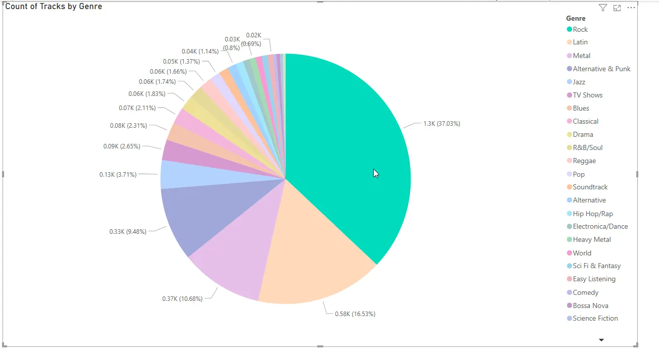 After pulling the data into Power BI, you can create data visualizations in the Report view. Follow the steps below to create a pie chart: