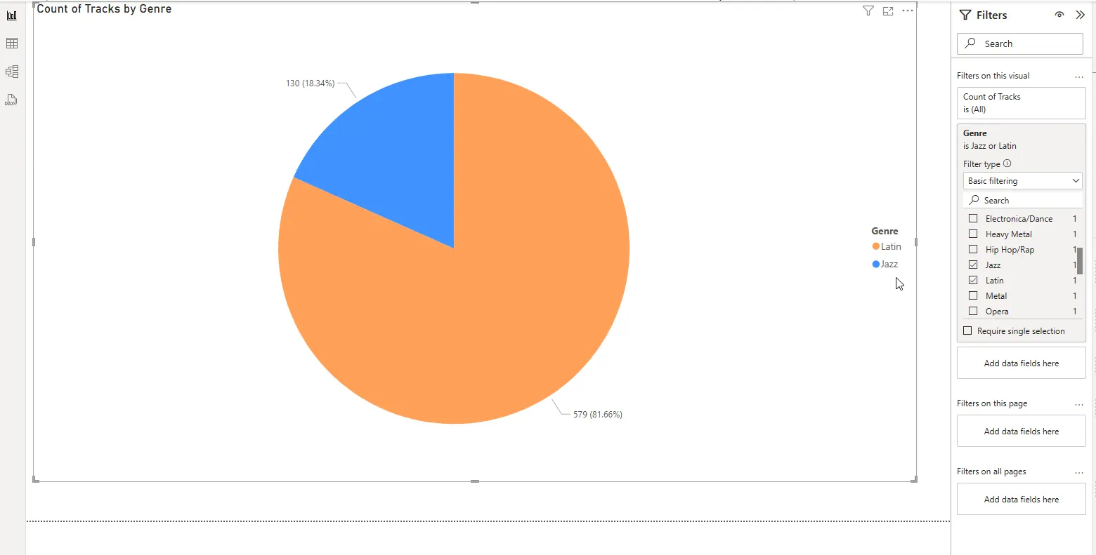 - Select a dimension in the Fields pane: for example, Genre Name.