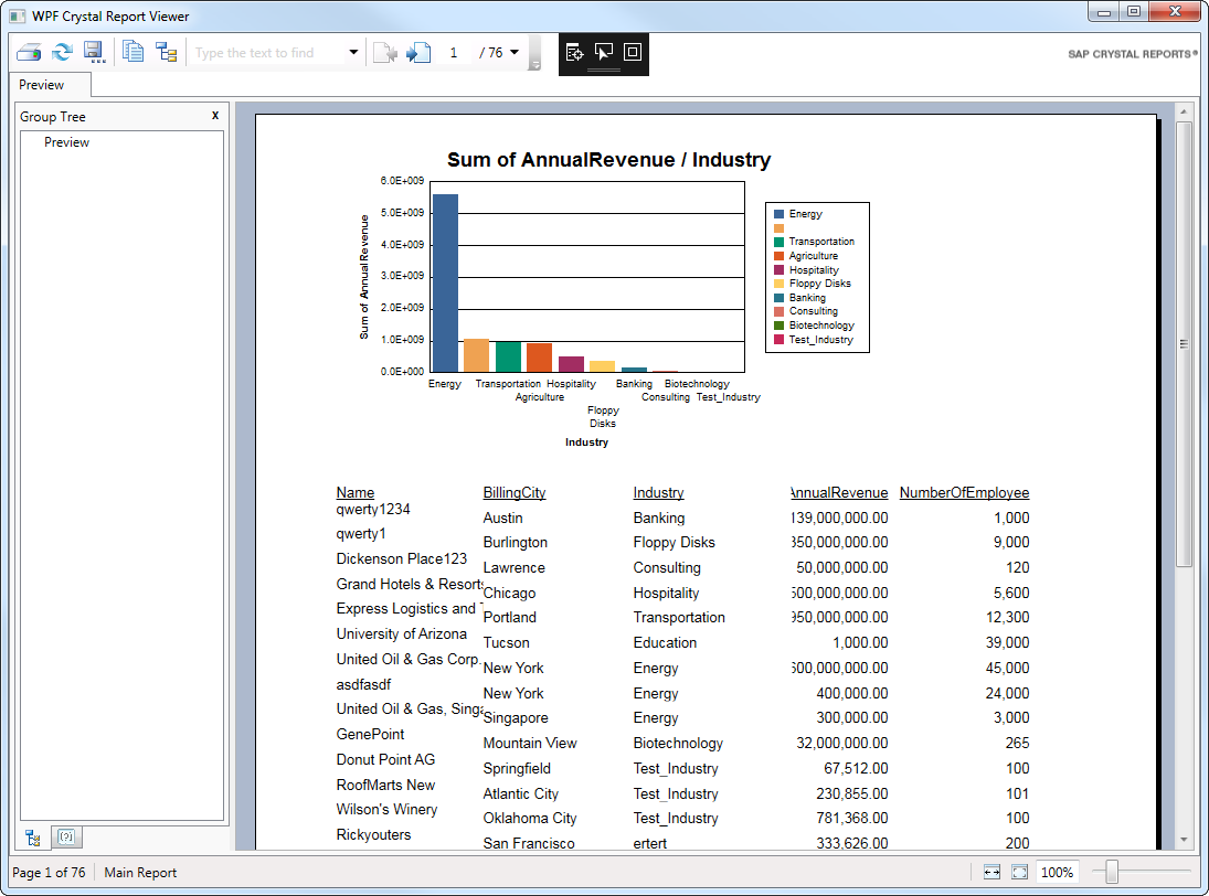 <Window x:Class="CrystalReportWpfApplication4.Window1" xmlns="http://schemas.microsoft.com/winfx/2006/xaml/presentation" xmlns:x="http://schemas.microsoft.com/winfx/2006/xaml" xmlns:cr="clr-namespace:SAPBusinessObjects.WPF.Viewer;assembly=SAPBusinessObjects.WPF.Viewer" Title="WPF Crystal Report Viewer" Height="600" Width="800" Loaded="Window_Loaded"> ... </Window>- Run the report. When the report is loaded, the provider executes the query to retrieve the current data.