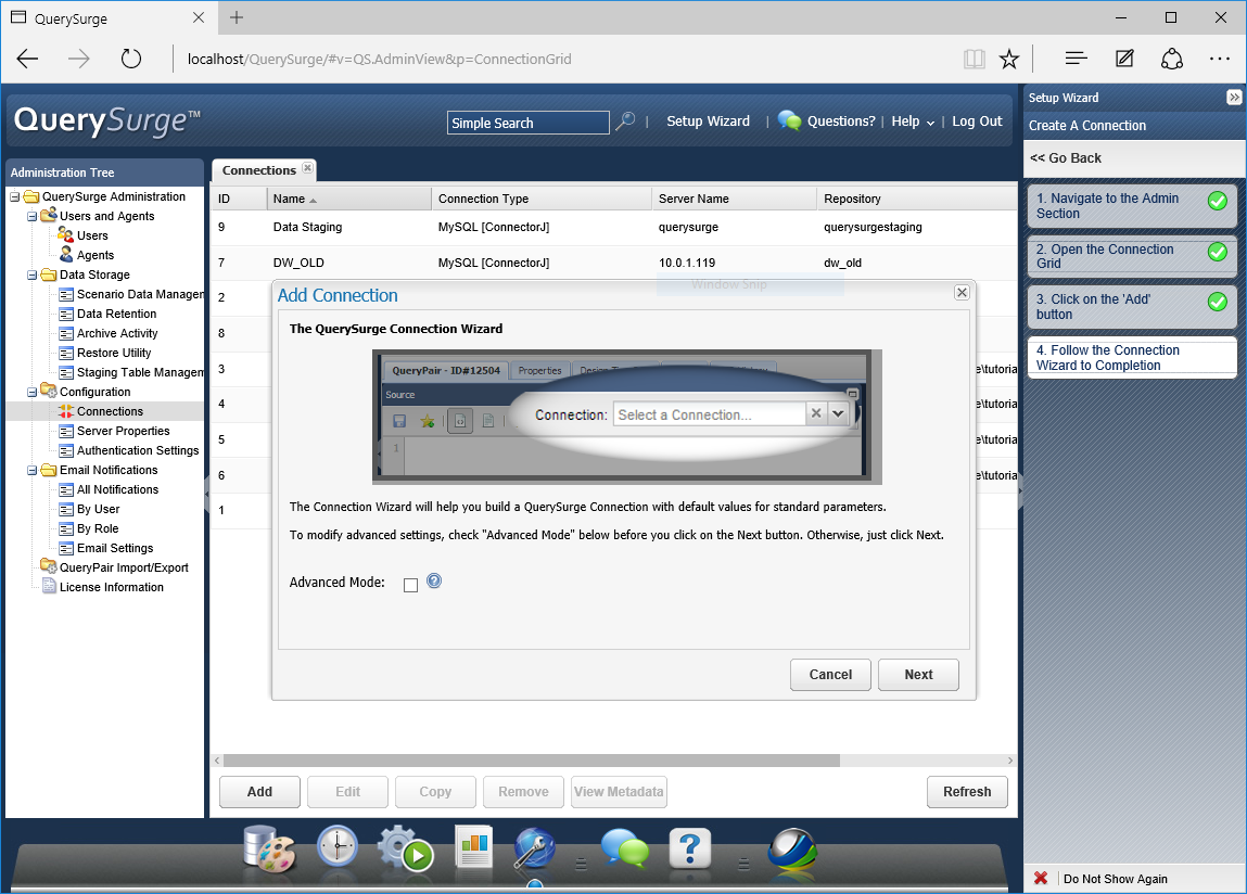 To connect to live CSV data from QuerySurge, you need to deploy the JDBC Driver JAR file to your QuerySurge Agent(s) and add a new connection from the QuerySurge Admin view.