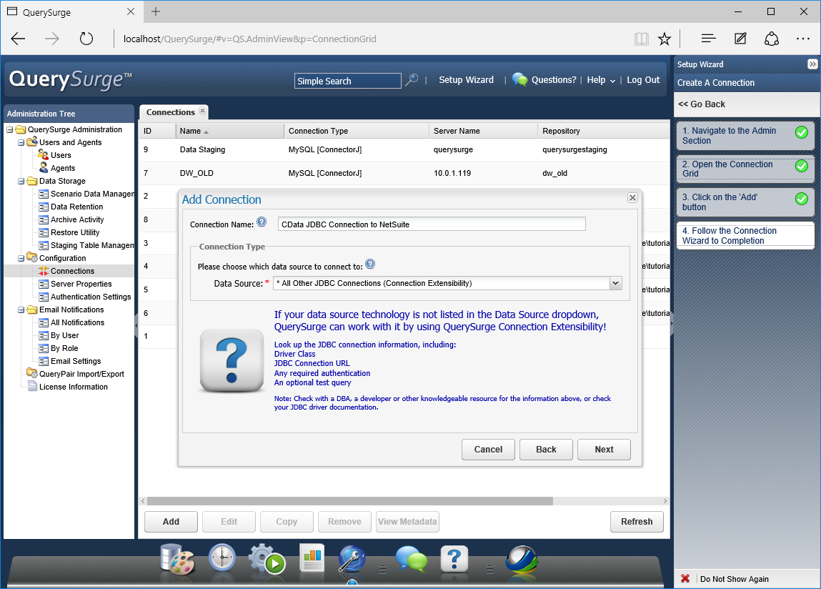 - Set the Data Source to "All Other JDBC Connections (Connection Extensibility)" and click Next.