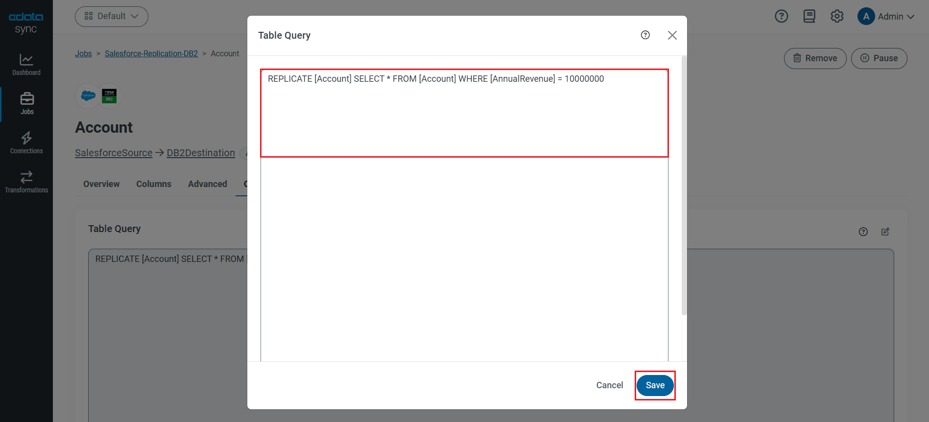 Once you have configured the replication job, click Save Changes. You can configure any number of jobs to manage the replication of your CSV data to IBM DB2.