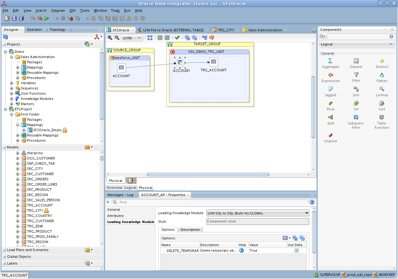 - In the CUSTOMERS_AP properties, select LKM SQL to SQL (Built-In) on the Loading Knowledge Module tab.