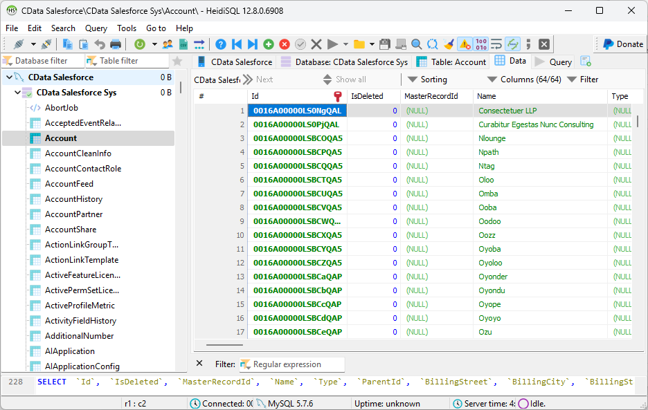 Try them now for free →Access Databricks Data from MySQL in HeidiSQL