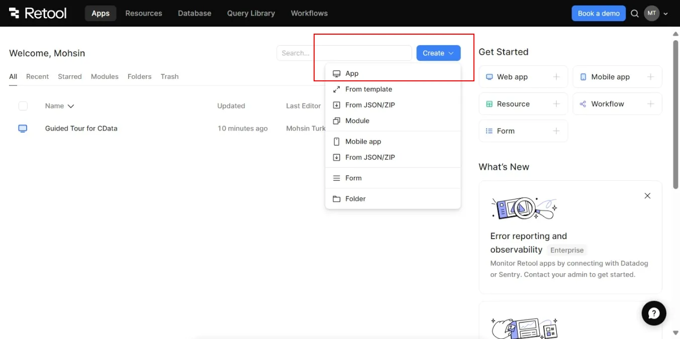 - Login to Retool and then go to the Resources tab, click Create new > Resource.