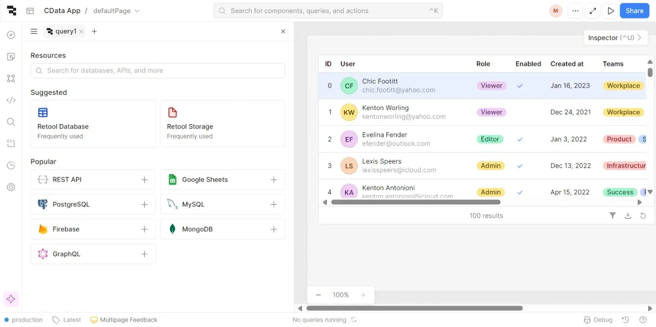 Now that you have integrated Microsoft Dataverse with Retool using CData Connect Cloud, it's time to utilize your live data to its full potential. Let's build a simple app: