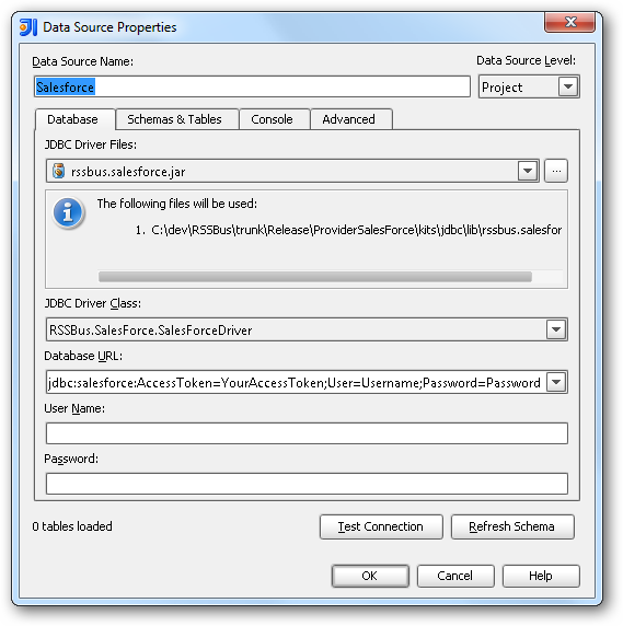 - JDBC Driver Class: In this menu, select cdata.jdbc.cds.CDSDriver from the list.