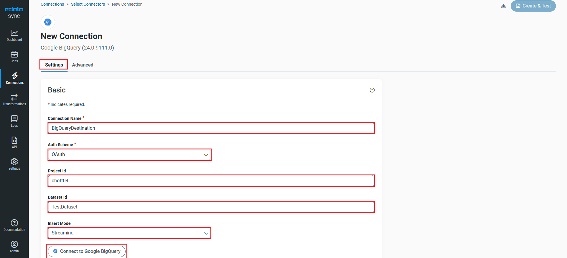 You are now connected to Google BigQuery and can use it as both a source and a destination.