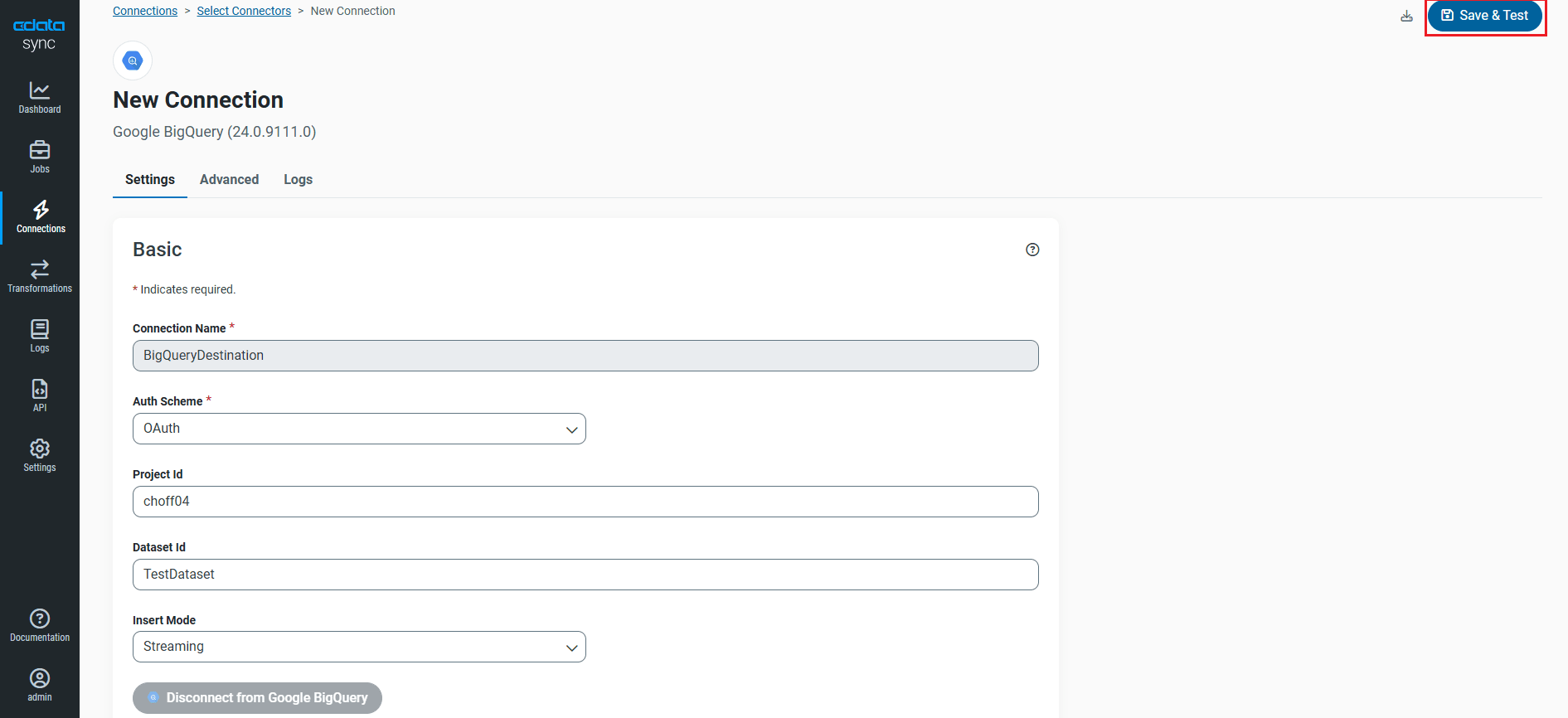 - Once connected, click Save & Test to save the connection.
