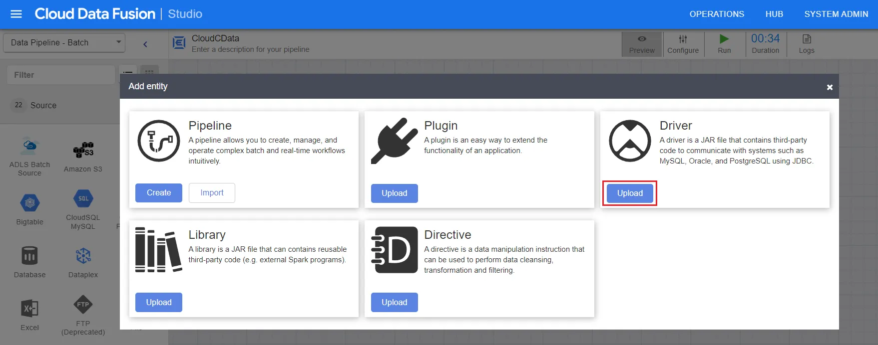 - Under Driver, click Upload.