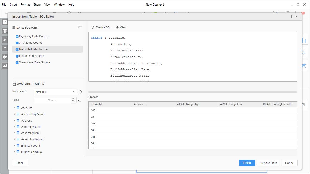 NOTE: Since we create a live connection, we can execute a SELECT * query and utilize the filtering and aggregation features native to the MicroStrategy products. - Click Finish and choose to connect live.