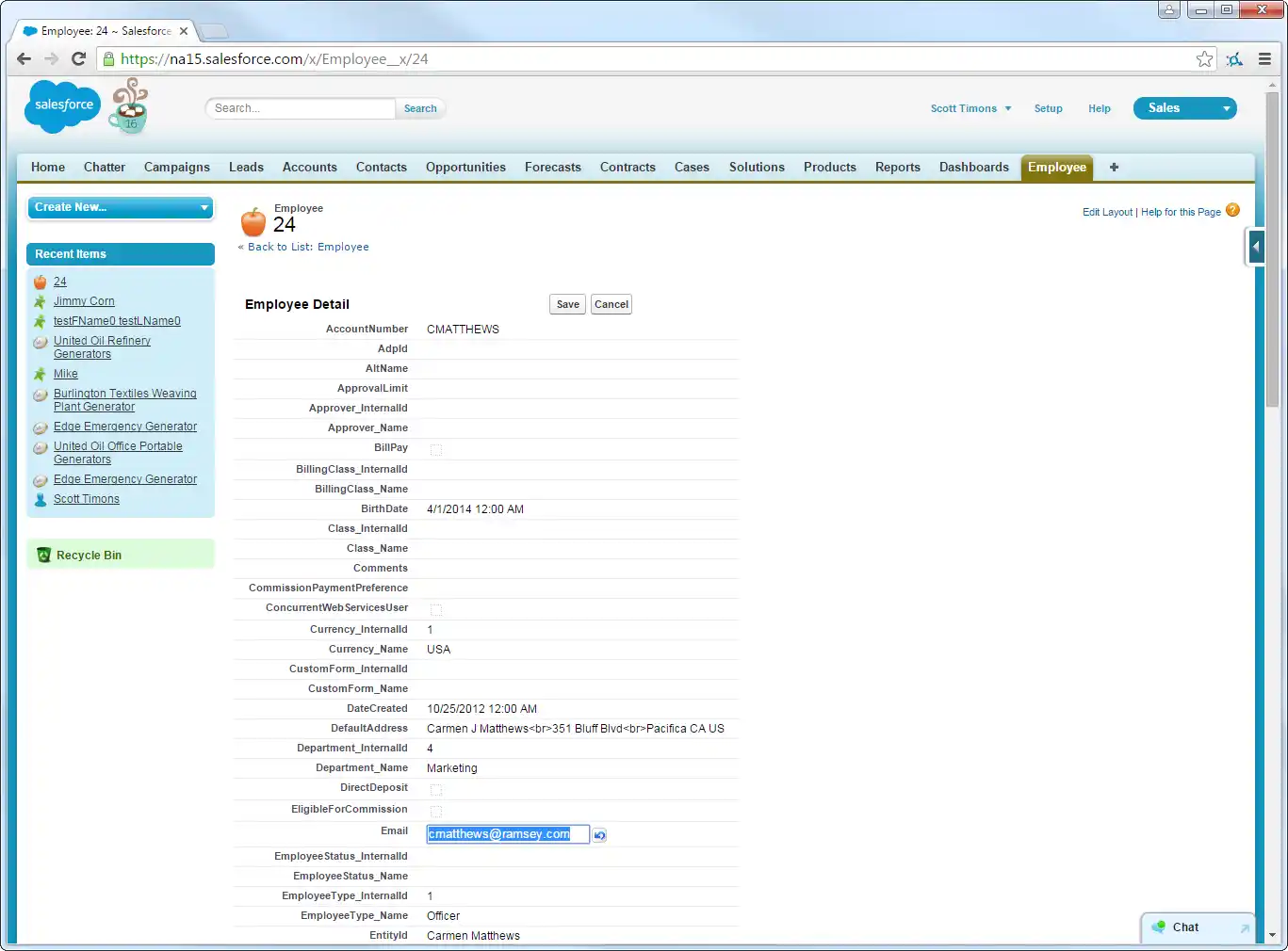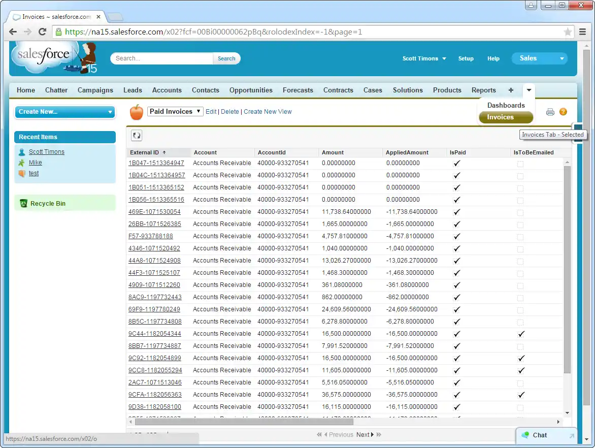 Create, read, update, and delete Excel objects from tabs on the Salesforce dashboard: