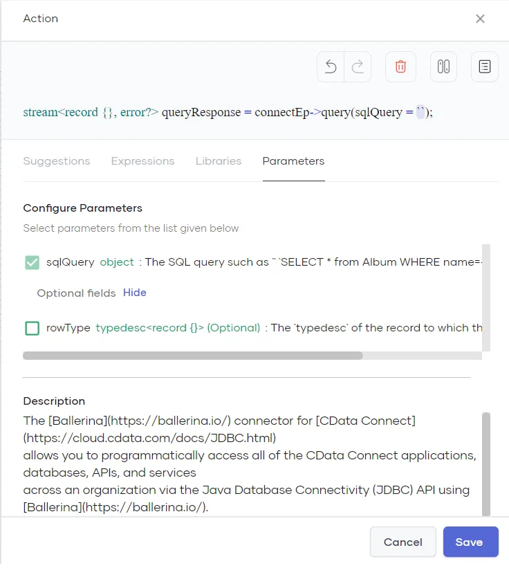 For more information about using Choreo with CData Connect Cloud, see the CData Connect Ballerina Guide. To get live data access to 100+ SaaS, Big Data, and NoSQL sources directly from your cloud applications, try CData Connect Cloud today!