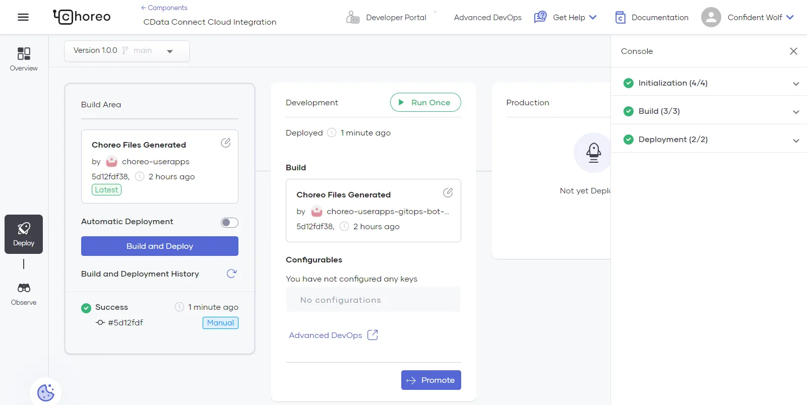 - Click Deploy in the left navigation bar of the Choreo Console.