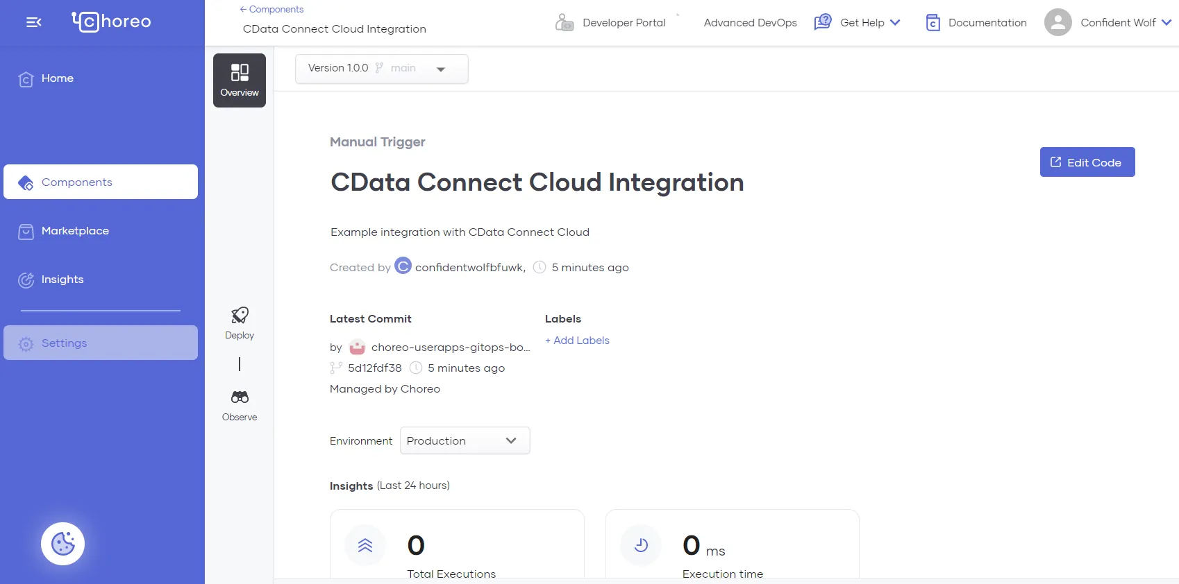 Sign in to the Choreo platform. Note: This article is from the perspective of an Anonymous user.