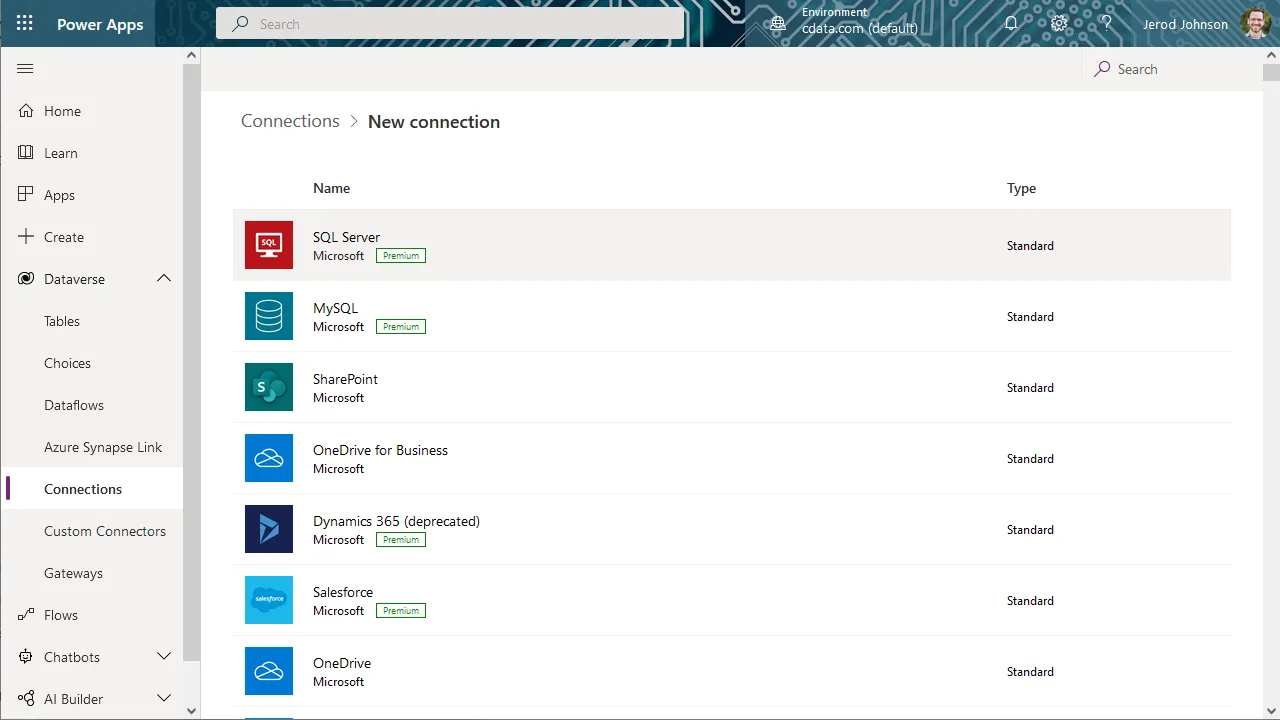 To use Connect Cloud to integrate GitHub data into your Power Apps, you need a new SQL Server connection: