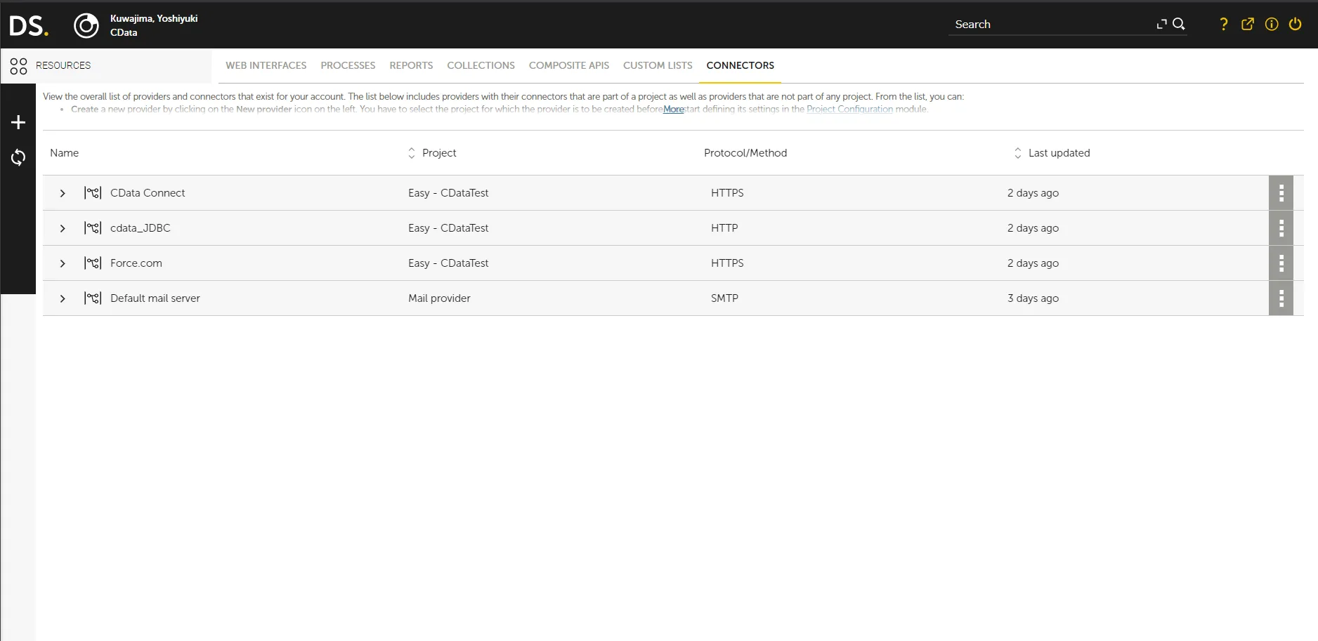 - Click Resources to bring up the Resources page, then select then the CONNECTORS tab.