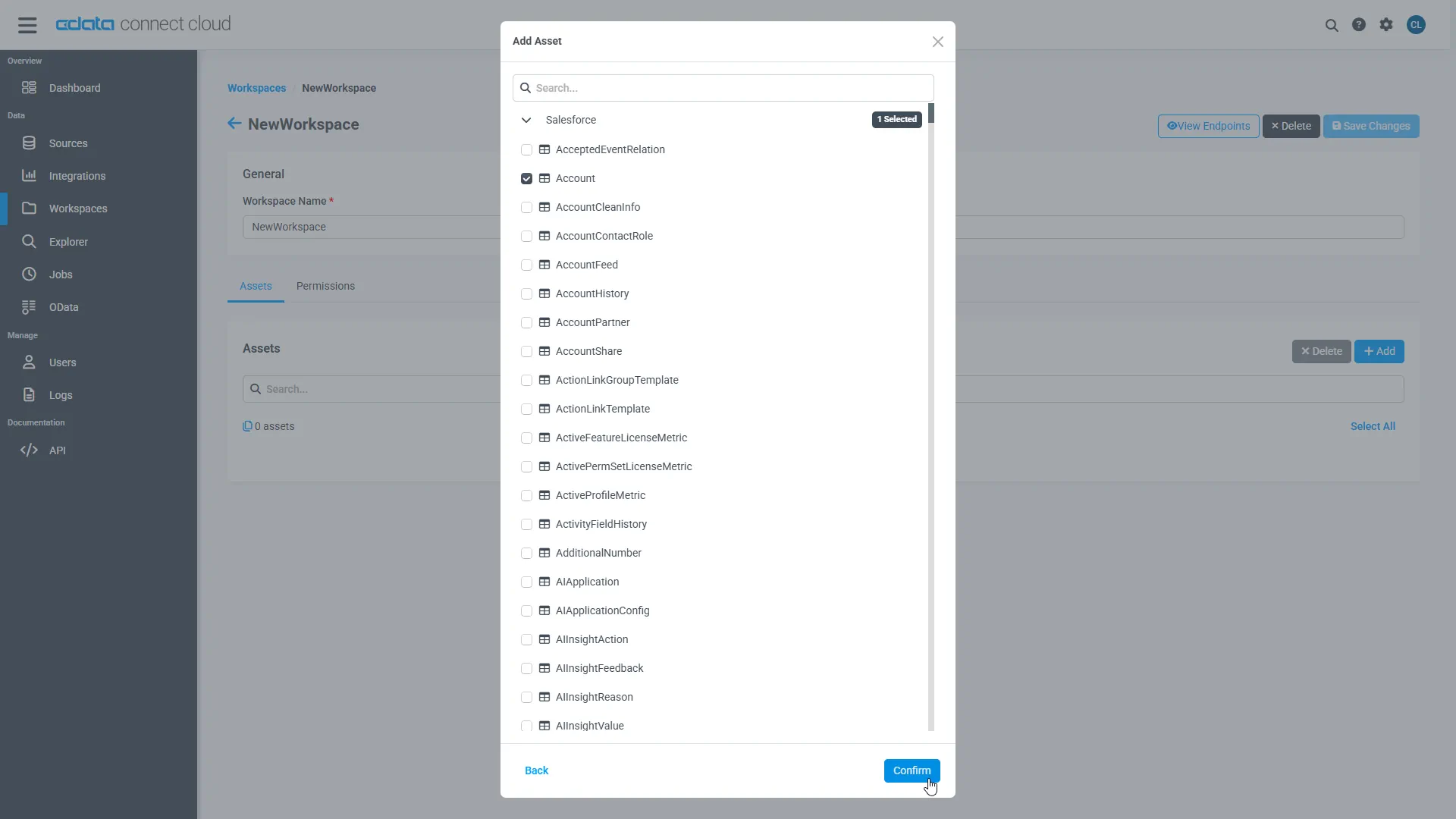 Select the table(s) you wish to work with and click Confirm.