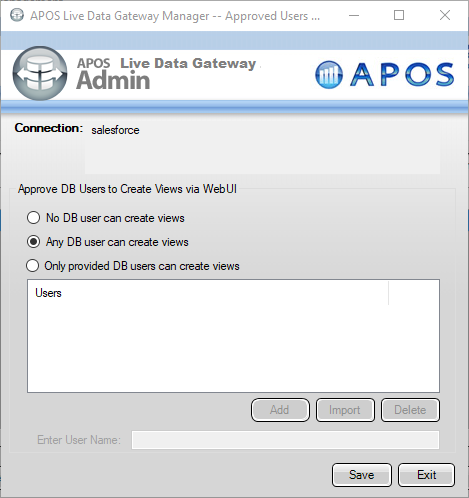 - Approve the appropriate DB users to create views and click "Save"