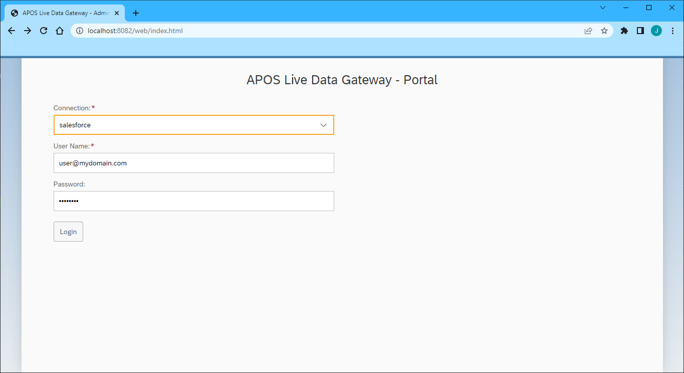 - In your browser, navigate to the APOS Live Data Gateway Portal