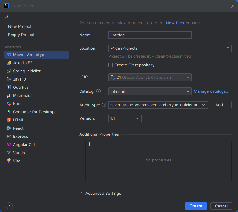 - Name the project and select "maven.archetypes:maven-archetype-quickstart" Archetype.