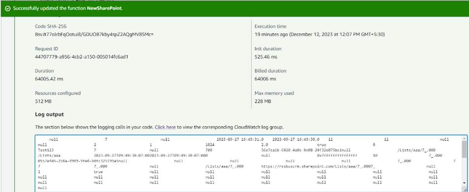 - You can now test the function. Set the "Event JSON" field to a table name and click, click "Test"