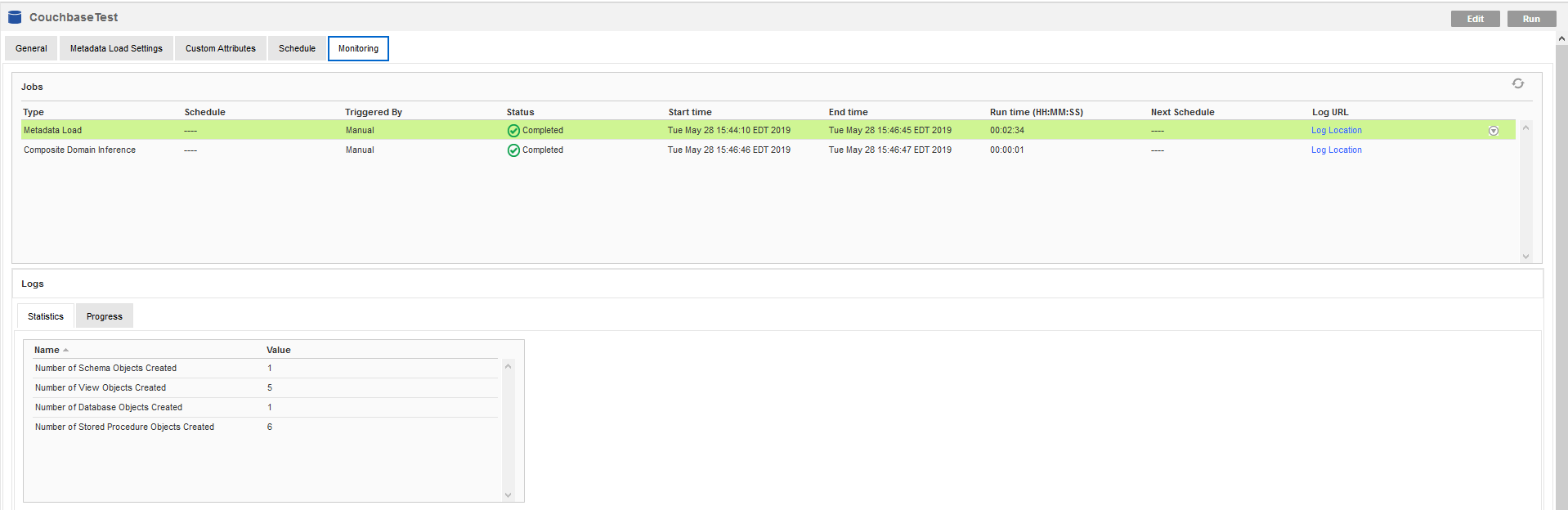 - Perform the metadata scan by navigating to the Monitoring tab and clicking Run. Depending upon the data source, this may takes a few minutes.