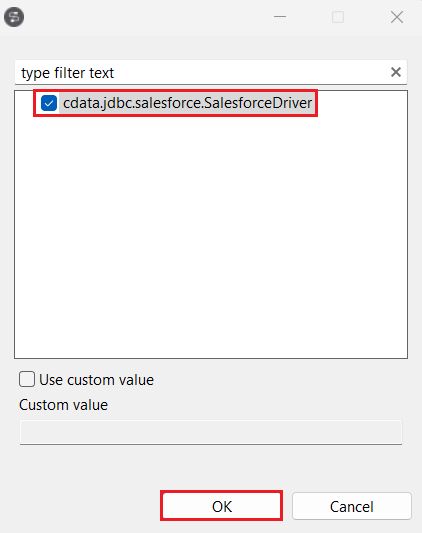 - Select the Driver Class as cdata.jdbc.github (JAR file obtained from your installation directory given in the previous step).