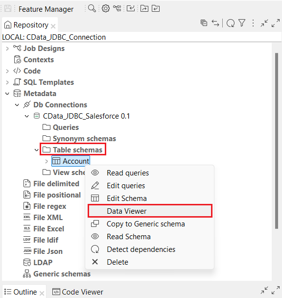 - Right-click on any of the selected tables and click on Data Viewer to preview the data from the data source.