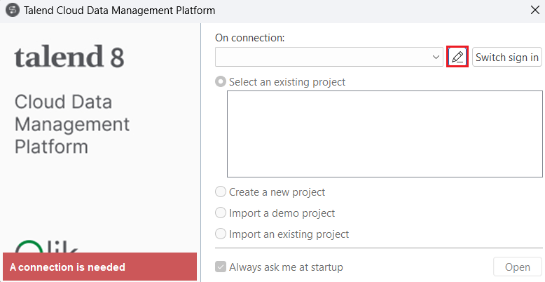 - The new project should appear under the Select an existing project section. Click on Open. The Talend Cloud Data Management Platform workspace opens up.