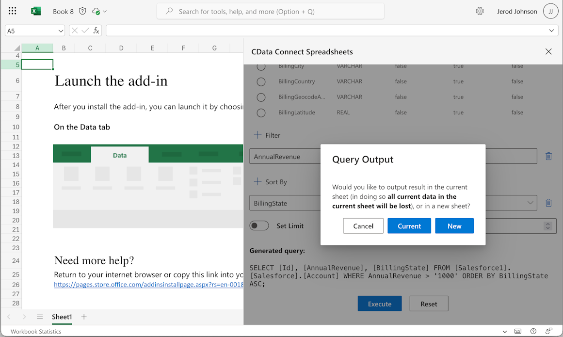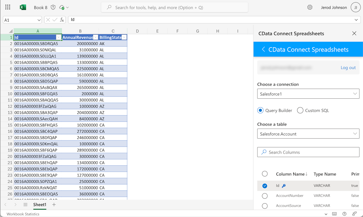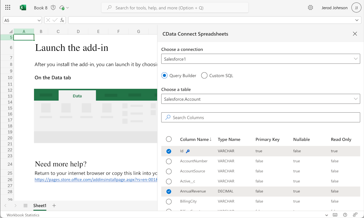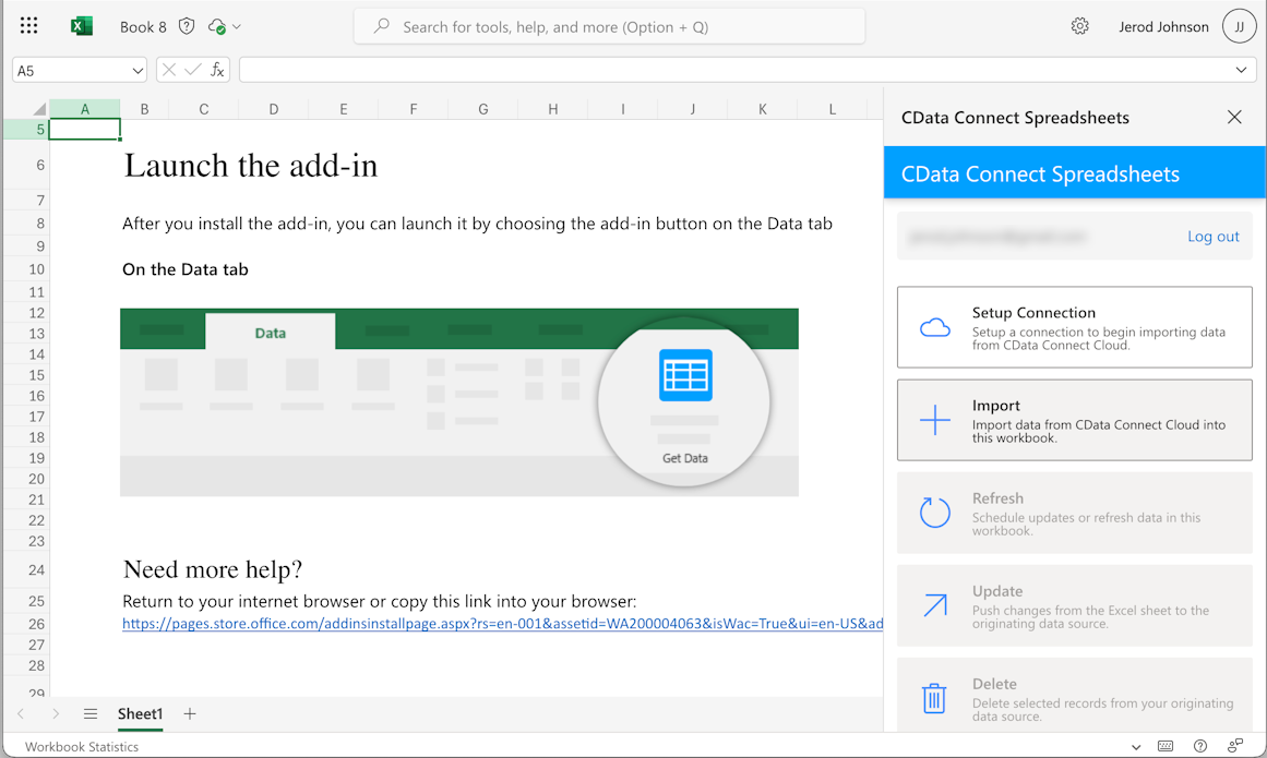This setup requires a Connect Spreadsheets instance and the Connect Spreadsheets Add-In for Excel. To get started, sign up a free trial of Connect Spreadsheets and install the free Connect Spreadsheets Excel Add-In.