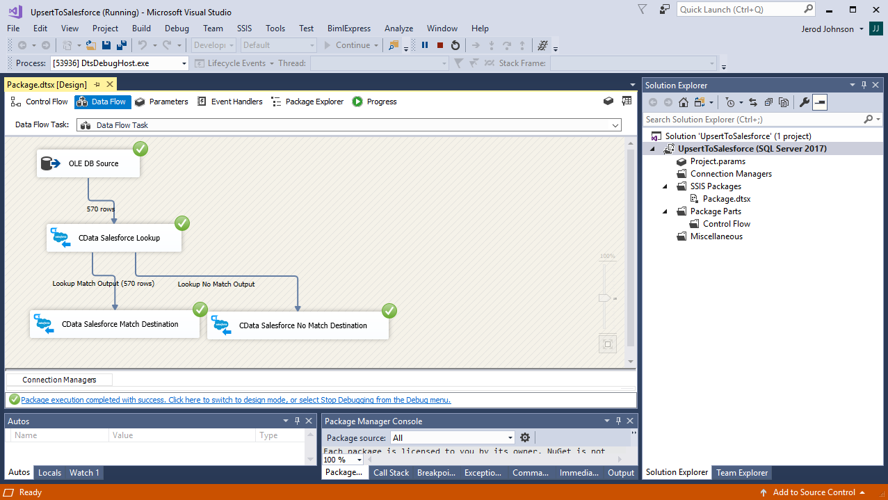 You can now run the project. After the SSIS Task has finished executing, data from your SQL table will be exported to the chosen table.
