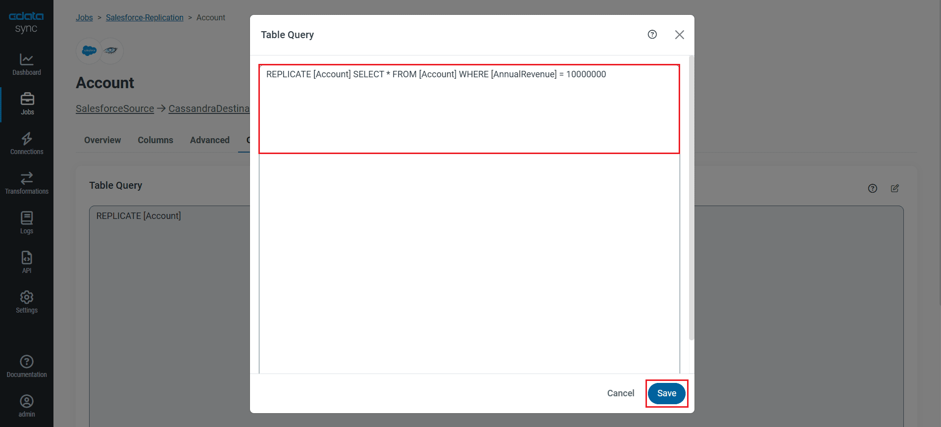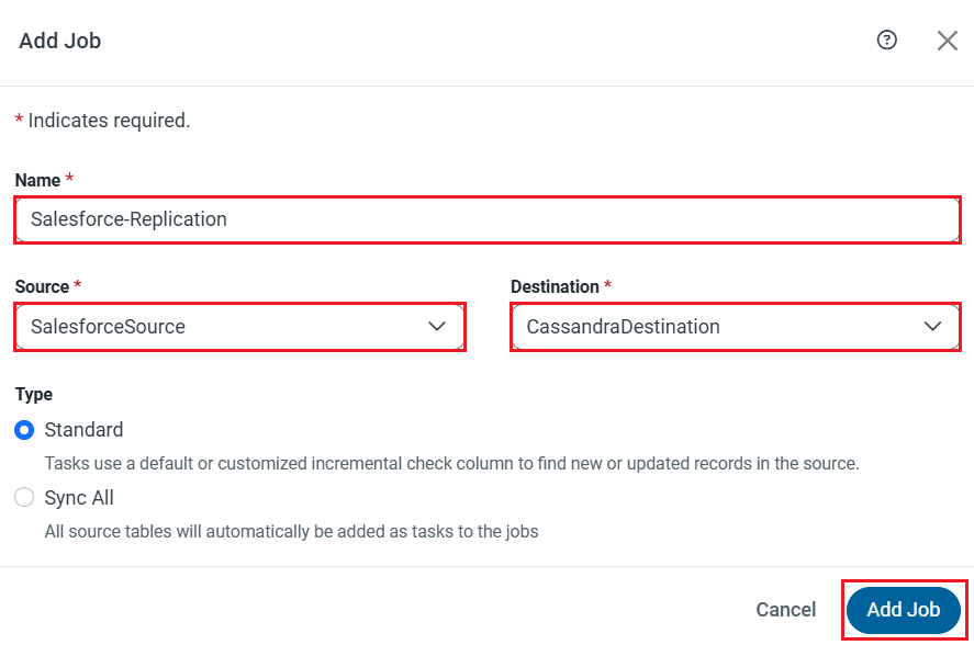 CData Sync enables you to control replication with a point-and-click interface and with SQL queries. For each replication you wish to configure, navigate to the Jobs tab and click Add Job. Select the Source and Destination for your replication.