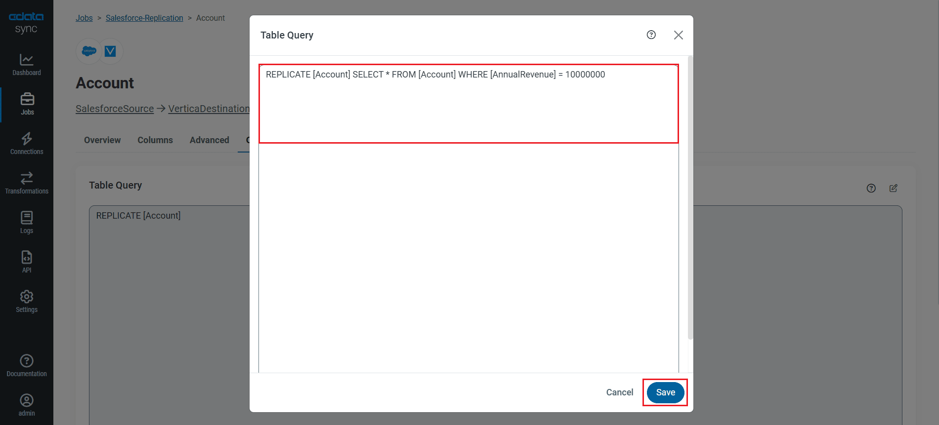 CData Sync enables you to control replication with a point-and-click interface and with SQL queries. For each replication you wish to configure, navigate to the Jobs tab and click Add Job. Select the Source and Destination for your replication.