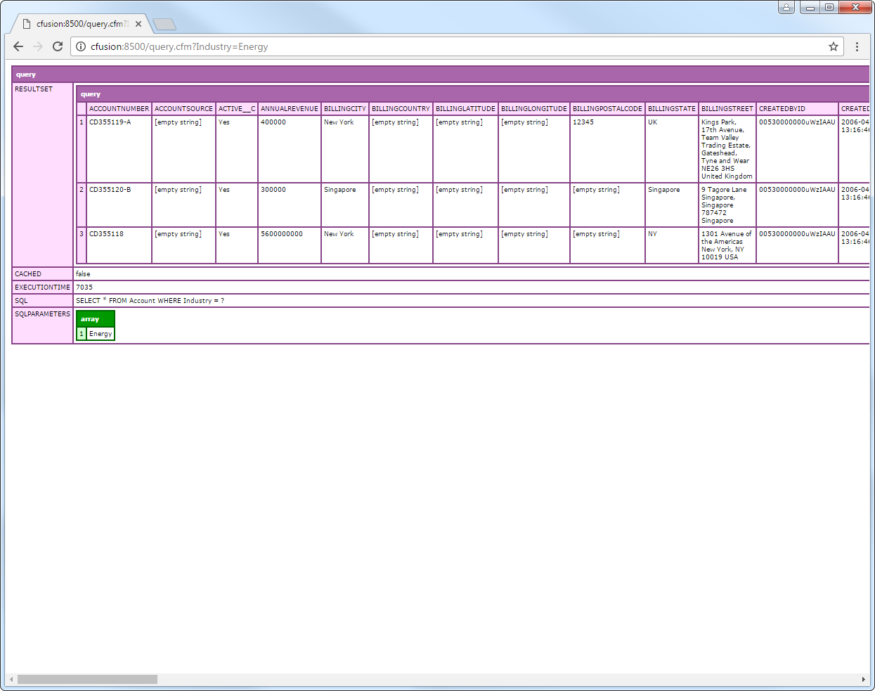 <cfquery name="PingOneQuery" dataSource="CDataPingOne"> SELECT * FROM [CData].[Administrators].Users WHERE EmployeeType = <cfqueryparam value="#EmployeeType#" cfsqltype="cf_sql_varchar"> </cfquery> <cfdump var="#PingOneQuery#">