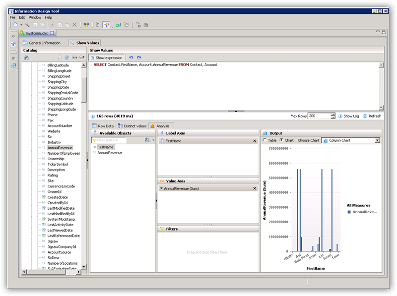 - On the Show Values tab, you can load table data and enter SQL queries. To view table data, expand the node for the table, right-click the table, and click Show Values. Values will be displayed in the Raw Data tab.