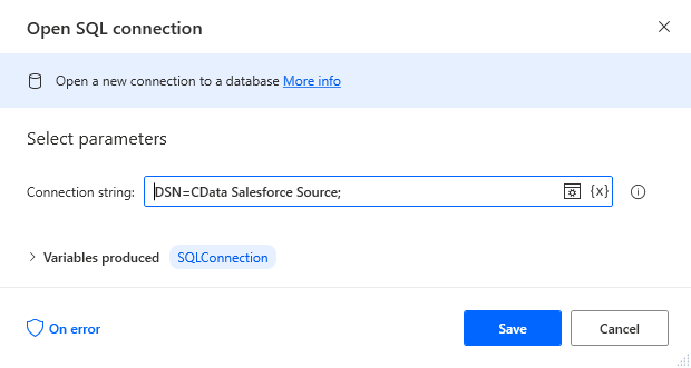 Add an Open SQL Connection Action