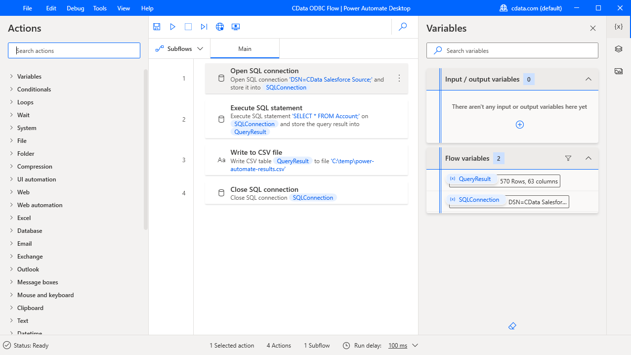 The CData ODBC Driver for ShipStation enables you to integrate ShipStation data into workflows built using Microsoft Power Automate Desktop.