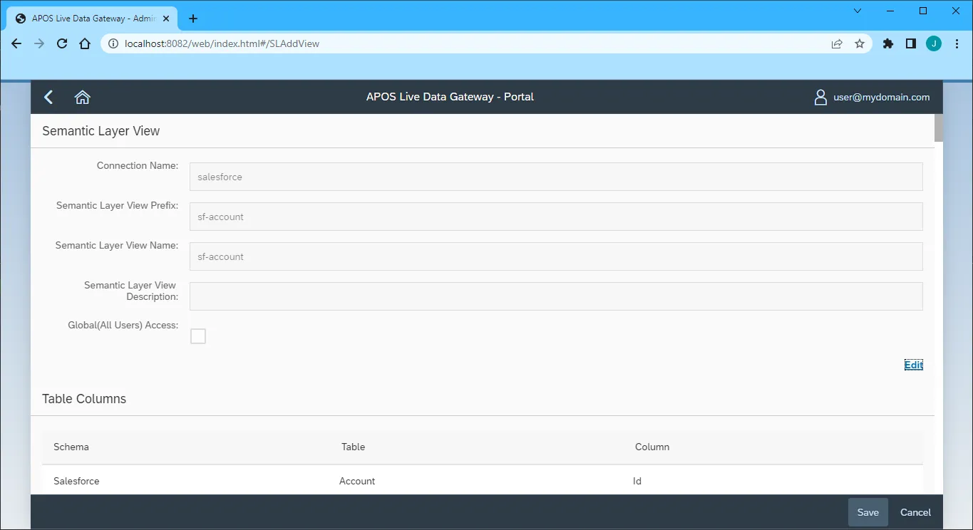 At this point, we are ready to build our semantic layer view in the Live Data Gateway Web UI.