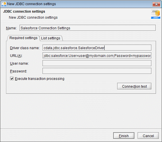 - Driver class name: cdata.jdbc.sql.SQLDriver