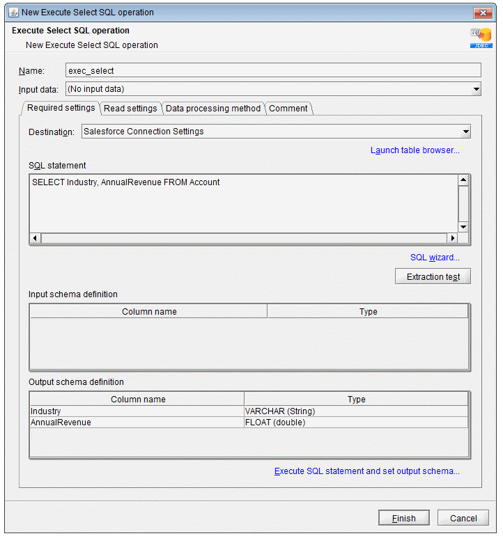 - Click "Extraction test" to ensure the connection and query are configured properly