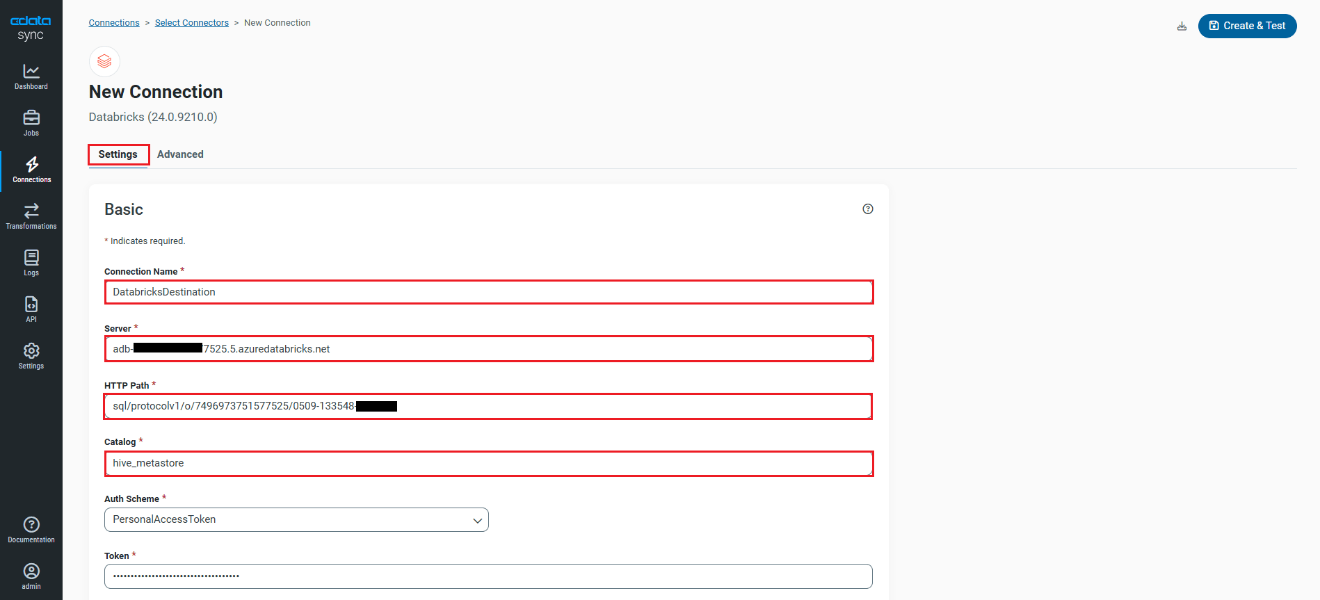 - To connect to Databricks, set the following connection properties: