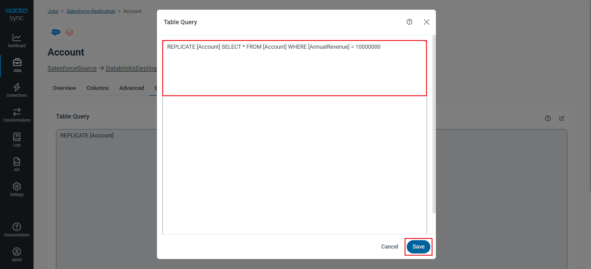 Once you have configured the replication job, click Save Changes. You can configure any number of jobs to manage the replication of your SQL Server data to Databricks.