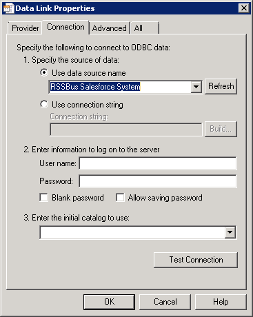 - Select 'Other/Advanced' for the type and on the next screen, select the 'Microsoft OLE DB Provider for ODBC Drivers'. On the Connection tab, select CData TaxJar Sys, the system DSN. The driver installation automatically creates matching user and system DSNs: The system DSN is needed to connect from SharePoint.